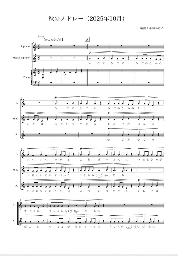 このメドレーは、小林かなこ(NINFA代表/音楽ファシリテーター)による編曲作品で