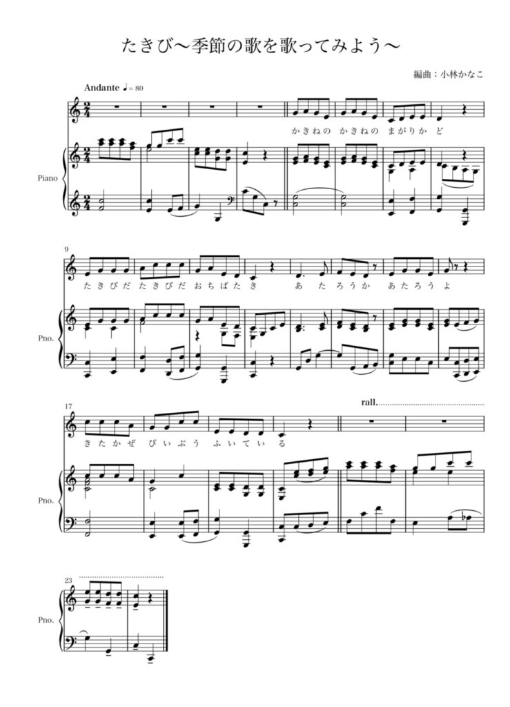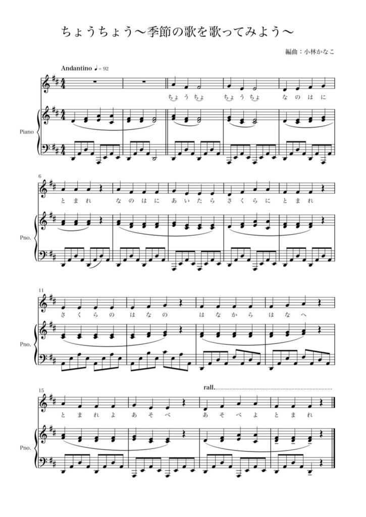 小林かなこによる編曲の楽譜を無料公開しています。